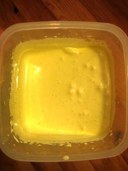 • Añadir la mantequilla de cacahuetes o la pasta de frutos secos y la levadura en polvo a vuestra elección sobre las yemas montadas.